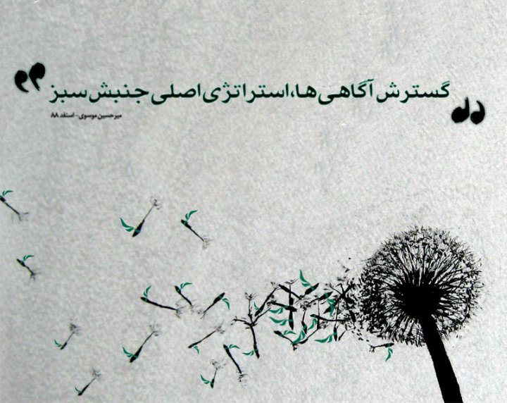جنبش سبز در تعریف کلی به مجموعه ی اعتراضات مردمی به نتیجه ی انتخابات ریاست جمهوری ایران در سال 1388 اطلاق می شود. هرچند تعریف این جنبش به علت وسعت و گوناگونی اهداف و ایده ها ممکن نیست، اما در سال های گذشته، رنگ سبز، که ابتدا رنگ کارزار انتخاباتی میرحسین موسوی بود، به نمادی از امید و مقاومت برای اصلاح امور سیاسی ایران بدل گشته است.